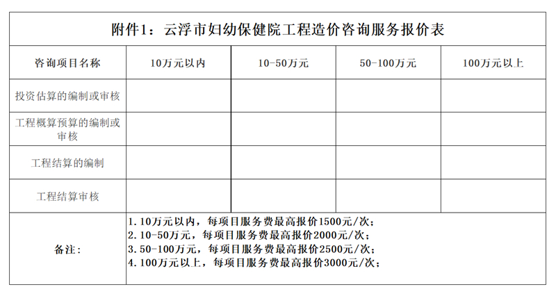 附件:1.云浮市妇幼保健院工程造价咨询服务报价表