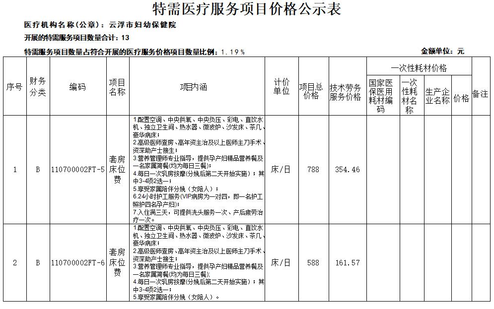 注:1.“项目内涵”应包括现行医疗服务价格项目中的内涵、除外内容和说明内容,以及拓展的特需服务内容;