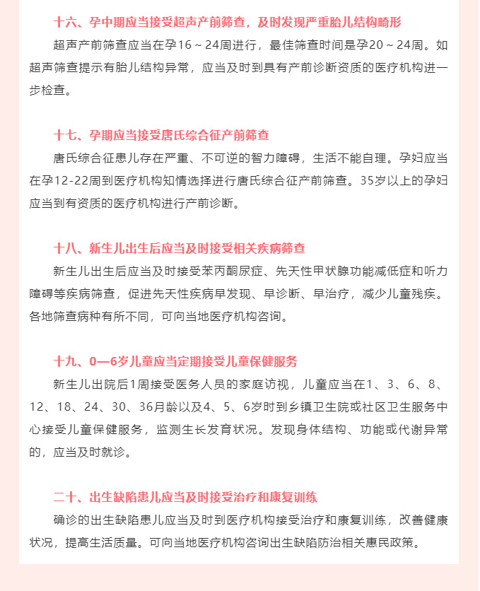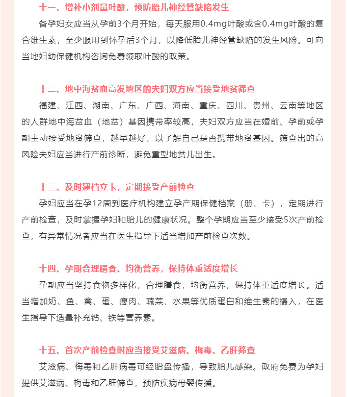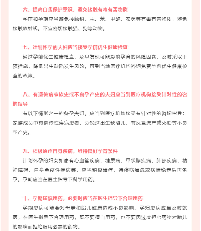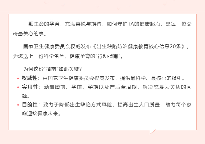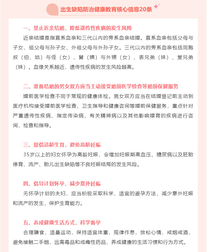 出生缺陷防治健康教育核心信息20条