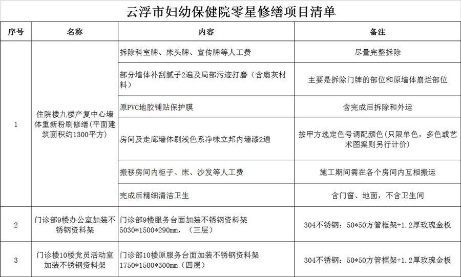 云浮市妇幼保健院零星修缮市场调研公告