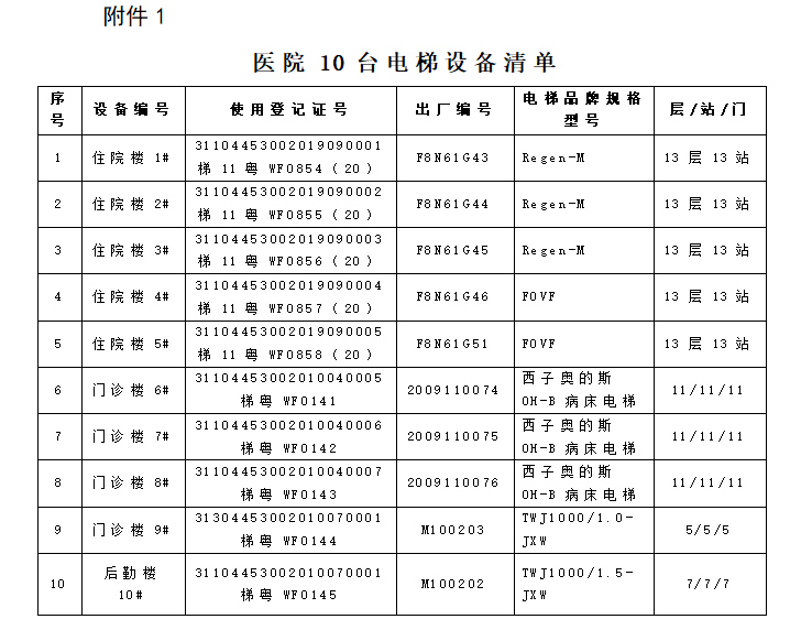 附件:1.医院10台电梯设备清单