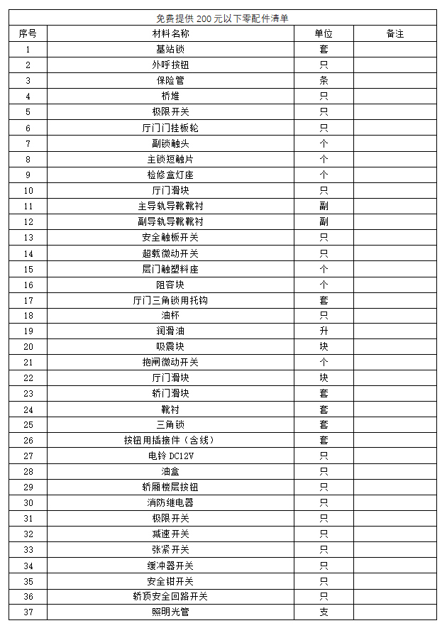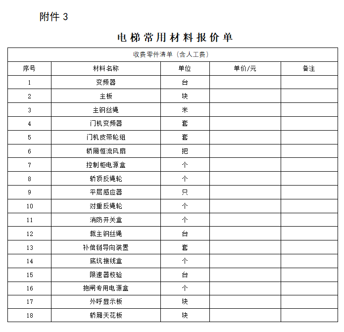 3.电梯常用材料报价单