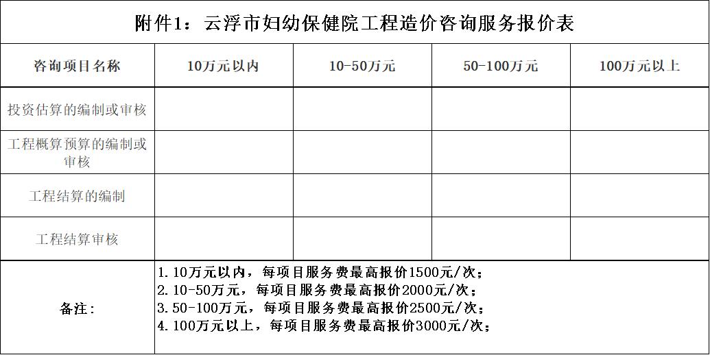 附件:1.云浮市妇幼保健院工程造价咨询服务报价表