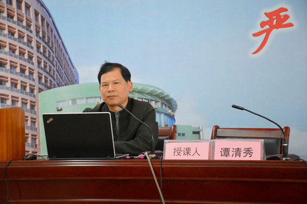 谭清秀紧紧围绕习近平新时代中国特色社会主义思想,从大会的主题、主要成果、习近平新时代中国特色社会主义思想、过去五年的历史性成就和历史性变革、我国社会主要矛盾的变化、两个一百年奋斗目标的战略部署、我国经济社会发展重大战略部署、坚定不移推进全面从严治党等八个方面内容,对党的十九大精神和历史贡献进行了系统阐释和深刻解读。