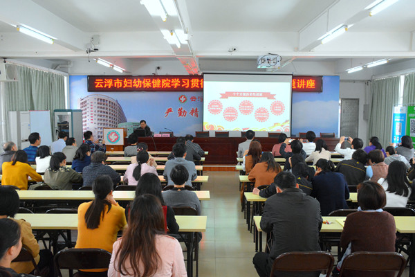 11月30日下午,我院在门诊住院楼11楼会议室举行学习贯彻党的十九大精神报告专题讲座,特邀请了云浮市宣讲团成员、云浮市委党校校委谭清秀同志来院作专题辅导报告。全院党员干部共90多人参加学习。医院党支部书记、院长陈海鸥出席会议并作重要讲话,会议由党支部副书记陈德伟主持。